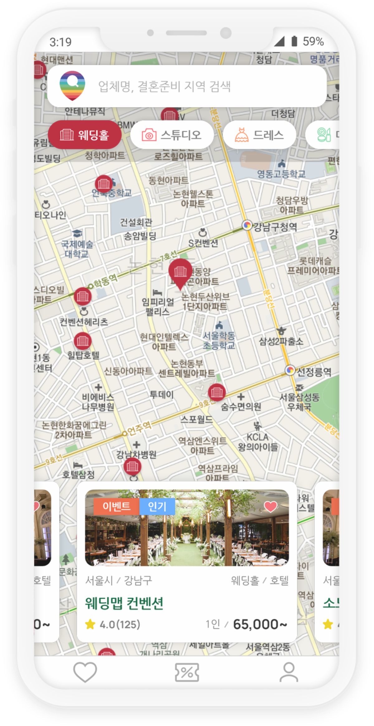 - 5)콘텐츠 공급자 : 다양한 콘텐츠, 광고 등 서비스에 게재될 수 있도록 웨딩맵에 정보를 제공하는 주체로써 결혼준비 관련 업체를 의미합니다. 대표적으로 웨딩맵 파트너 회원 (파트너사) 등이 있습니다.